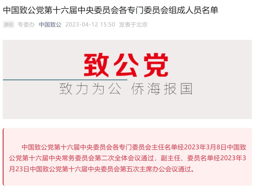 中国致公党第十六届中央委员会各专门委员会主任名单经2023年3月8日中国致公党第十六届中央常务委员会第二次全体会议通过,副主任、委员名单经2023年3月23日中国致公党第十六届中央委员会第五次主席办公会议通过。本所主任卢子明、执行主任刘国军分别续任中国致公党第十六届中央委员会法治建设委员会副主任、委员职务。 法治建设委员会系致公党中央的十五个专门委员会之一,在致公党中央常务委员会和主席会议(主席办公会议)领导下,开展相关工作,主要负责开展法律方面的参政议政调研工作,提出涉及法治建设工作的提案和建议,收集和报送社情民意信息等。 |